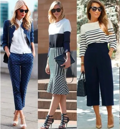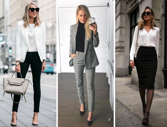 Aqui as peças são atemporais, porém mantendo a formalidade, peças discretas, com um bom corte, que sejam de qualidade, para compor looks sóbrios e transmitir uma imagem formal e conservadora. Podemos ver blazers, calças sociais e mocassins fechados, são os destaques em cores vinho e bege assim como estampas estilo risca de giz.